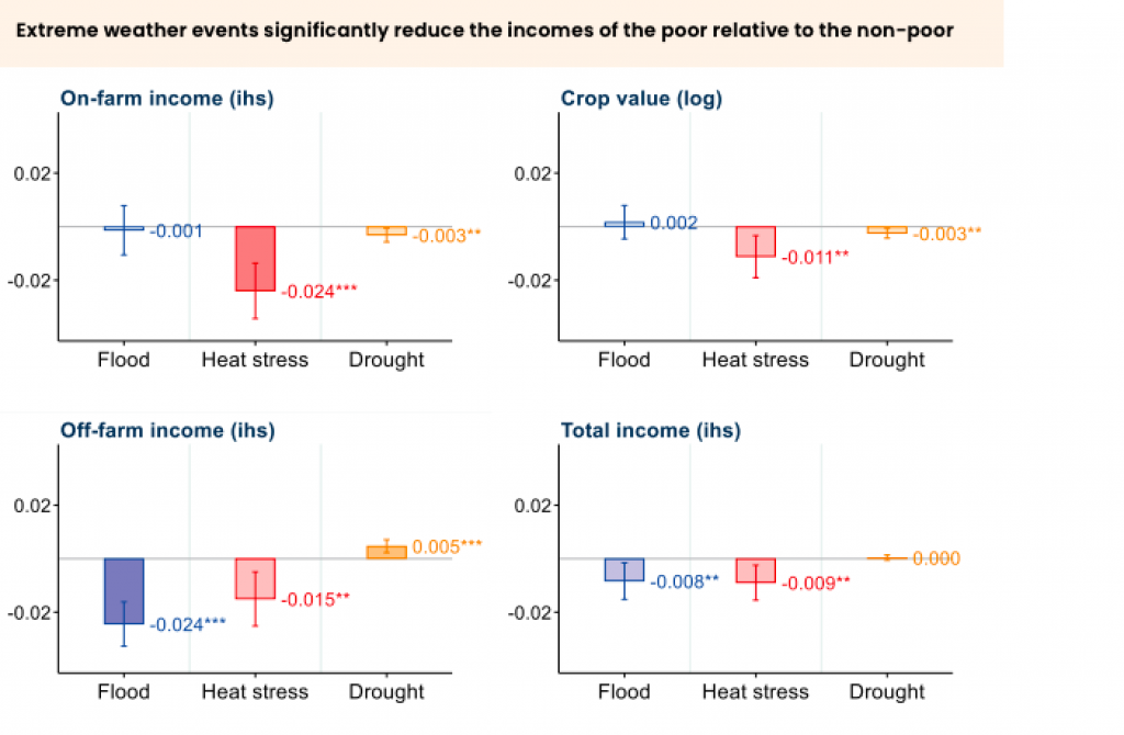 - Similarly, every day of extreme Precipitation causes poor households to lose 0.8% of their incomes relative to non-poor households, mainly driven by losses in off-farm incomes.